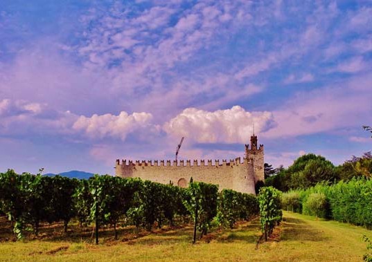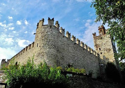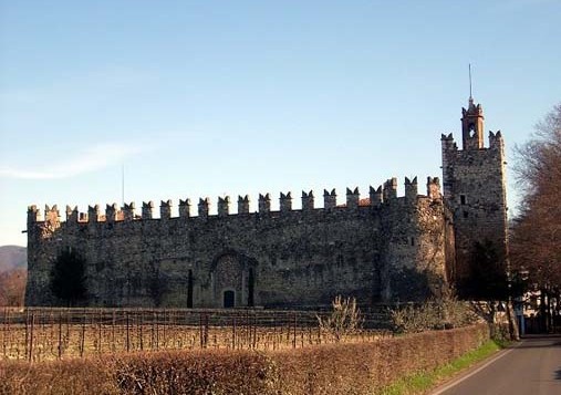 The Franciacorta Region is the “Champagne” of Italy, with very good sparkling and still wines and you will find many beautiful historic vineyards here. There are as well many manor houses and castles. One of the most remarkable ones is the Passirano Castle. Built around 1100 a.D., it had a defensive function. It is worthwhile a visit, to look at from the outside and be fascinated by its round towers, like the Specola Tower (once an astronomic observatory) and the ways it has been built in general (trapezoidal ground plan). It is owned by the Marchesi Fassati di Balzola and in its cellars they keep wine of their very own vineyard.